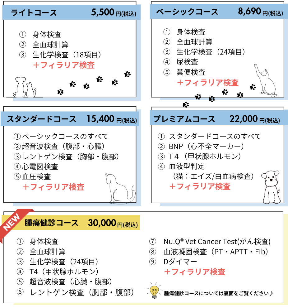 全てのコースにフィラリア検査が付いています。